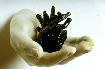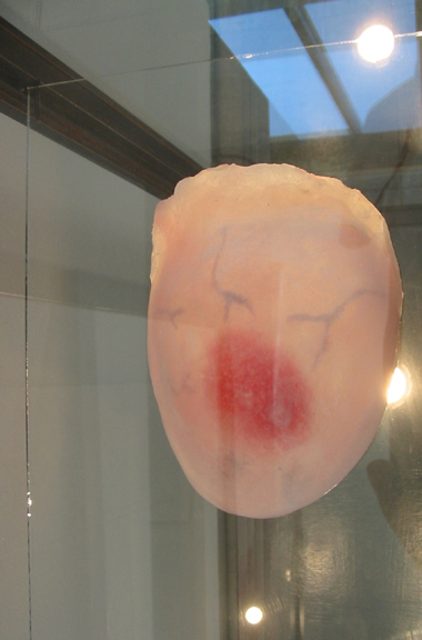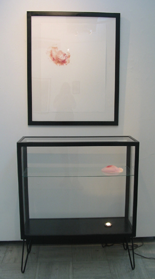 mono print, wax breast, display case